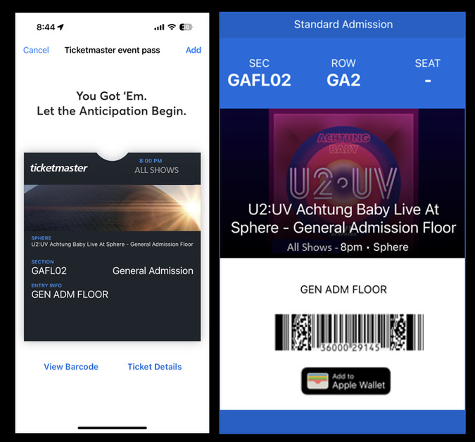 You have an extra U2 ticket...